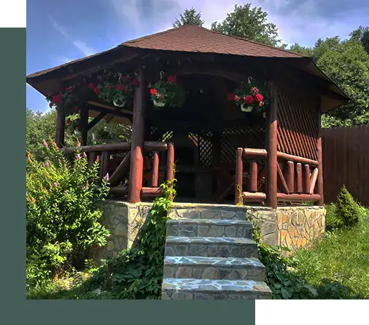 Situată Ă®ntr-un spatiu linistit, noi Ă®È›i oferim o experiență de neuitat, cu ajutorul unui foisor din lemn. Acest spaÈ›iu special creat pentru odihnă È™i relaxare Ă®È›i permite să te bucuri de frumuseÈ›ea naturii Ă®nconjurătoare.